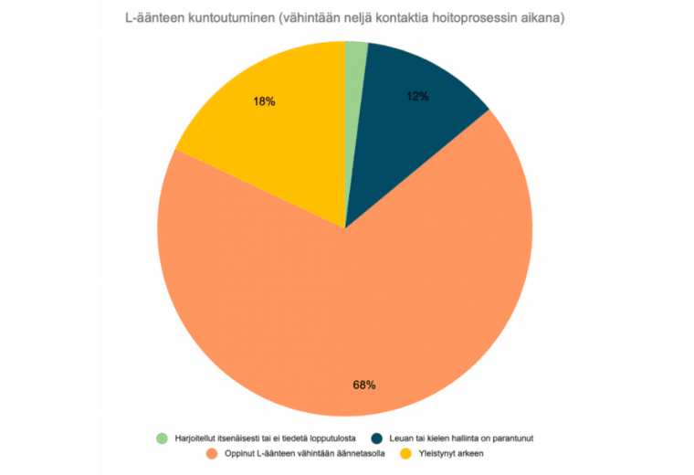 Största delen av barnen (över 80 %) som tränade l-ljudet utvecklades märkbart så att de åtminstone lärde sig l-ljudet på språkljudsnivå under nätterapiperioden.
